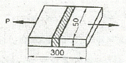 [그림]과 같은 용접부에 인장하중이 60kN을 받고 200MPa 이 작용하고 있을 때 두께는 몇 mm로 설계하여야 하는가?