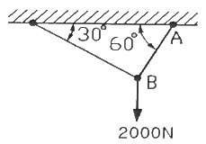 구조물의 AB 부재에 작용하는 인장력은 약 몇 N인가?