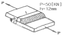 그림과 같은 겹치기 이음의 필릿 용접을 하려고 한다. 허용응력이 50Mpa, 인장하중이 50kN, 판두께가 12mm일 때 용접 유효길이는 약 몇mm인가?