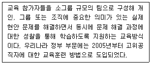 다음 설명에 해당하는 공무원 교육훈련 방법은?