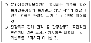 관광진흥법령상 서울특별시가 아닌 곳에서 관광특구를 지정하기 위한 요건이다. ( )에 들어갈 숫자를 순서대로 올바르게 나열한 것은?