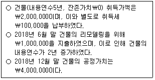 (주)한국이 2018년 1월 초 건물을 취득하여 투자부동산으로 분류 하였을 때, 다음 자료의 거래가 (주)한국의 2018년 당기손익에 미치는 영향은? (단, 투자부동산에 대하여 공정가치모형을 적용하며, 감가상각비는 정액법으로 월할 계산한다)