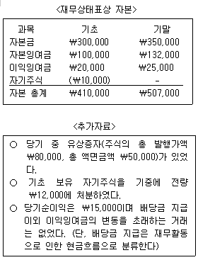 (주)한국의 <재무상태표상 자본> 및 <추가자료>가 다음과 같을 때, 재무활동으로 인한 순현금흐름은?