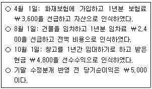 (주)한국의 기말 수정분개와 관련된 자료가 다음과 같을 때, 기말 수정분개를 반영한 후 당기순이익은? (단, 기간은 월할 계산한다)