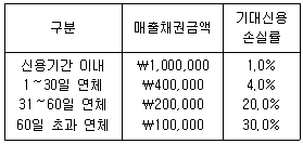 (주)한국은 고객에게 60일을 신용기간으로 외상매출을 하고 있으며, 연령분석법을 사용하여 기대신용손실을 산정하고 있다. 2017년 말 현재 (주)한국은 매출채권의 기대신용손실을 산정하기 위해 다음과 같은 충당금설정률표를 작성하였다. 2017년 말 매출채권에 대한 손실충당금(대손충당금) 대변잔액 ₩20,000이 있을 때, 결산시 인식할 손상차손(대손상각비)은?