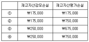 (주)한국의 20×1년 12월 31일 재고자산 관련 자료는 다음과 같다. (주)한국이 20×1년 12월 31일에 인식해야 할 재고자산감모손실과 재고자산평가손실을 바르게 연결한 것은?