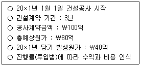 다음은 (주)한국의 건설계약 관련 자료이다. (주)한국이 20×1년도에 인식할 공사수익은?
