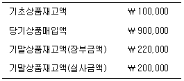다음은 도ㆍ소매 기업인 (주)한국의 상품과 관련된 자료이다. 정상적 원인에 의한 재고감모손실은 매출원가로, 비정상적 감모손실은 기타비용으로 보고하는 경우 (주)한국이 당기에 인식해야 할 매출원가는? (단, 재고감모손실의 30%는 비정상적 원인, 나머지는 정상적 원인에 의해 발생되었다)