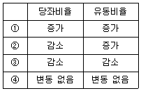 (주)한국의 20×1년 3월 20일 당좌비율은 75%, 유동비율은 140%이다. (주)한국이 20×1년 3월 30일 매입채무를 현금 ₩100,000으로 상환할 경우, 당좌비율과 유동비율에 미치는 영향을 바르게 연결한 것은?