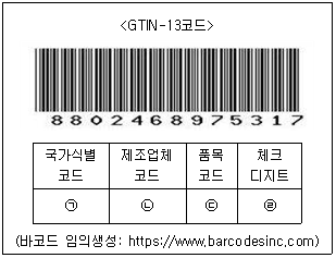 바코드 구조 관련 아래 글상자 ㉠, ㉡, ㉢, ㉣에 기재될 사항으로 가장 옳은 것은?