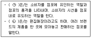 아래 글상자는 점포의 공간관리에 대한 내용의 일부이다. ㉠과 ㉡에 들어갈 용어를 올바르게 나열한 것은?