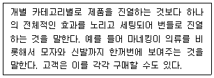 아래 글상자에서 설명하는 매장의 내부 진열유형으로 가장 옳은 것은?