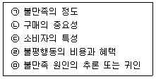 아래 글상자의 내용 가운데 구매에 불만족한 고객의 불평행동 선택에 영향을 미치는 요인을 모두 포함하여 나열한 항목으로 옳은 것은?