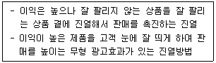 아래의 내용은 어떤 진열방법에 대한 설명인가?