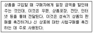 아래 글상자에서 설명하고 있는 판매촉진 수단으로 옳은 것은?
