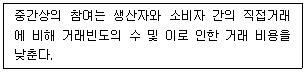 아래 글상자에서 설명하는 중간상의 필요성으로 가장 옳은 것은?