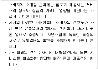 아래의 글상자에서 설명하고 있는 소매업태의 발전이론으로 가장 옳은 것은?