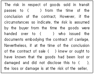 국제물품매매계약에 관한 유엔협약(CISG, 1980) 제68조의 내용이다. ( )에 들어갈 용어를 순서대로 바르게 나열한 것은?