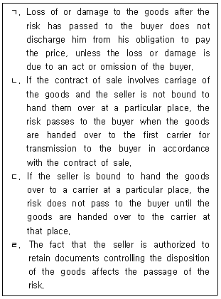 국제물품매매계약에 관한 유엔협약(CISG, 1980)에서 제66조, 제67조에서 규정하고 있는 내용으로 옳은 것을 모두 고른 것은?