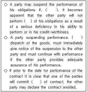 국제물품매매계약에 관한 유엔협약(CISG, 1980) 제71조, 제72조에 관한 내용이다. ( )에 들어갈 용어를 순서대로 바르게 나열한 것은?