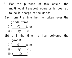 국제물품복합운송에 관한 유엔협약(MT조약, 1980) 제14조 '책임의 기간(PERIOD OF RESPONSIBILITY)'의 내용이다. ( )안에 들어갈 내용으로 옳지 않은 것은?