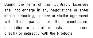 다음은 국제기술이전계약서(International Transfer of Technology Contract)의 조항이다. 이 조항에 해당하는 것은?
