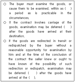 국제물품매매계약에 관한 유엔협약(CISG, 1980) 제38조 '물품의 검사시기'에 관한 내용이다. ( )에 들어갈 내용을 순서대로 바르게 나열한 것은?
