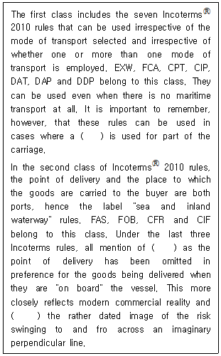 IncotermsⓇ 2010 '서문(Introduction)'의 일부이다. ( )에 들어갈 내용을 순서대로 바르게 나열한 것은?