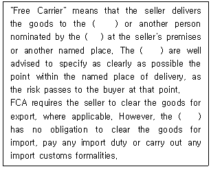 IncotermsⓇ 2010 FCA 규칙이다. ( )에 들어갈 용어를 순서대로 바르게 나열한 것은?