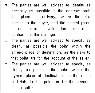 IncotermsⓇ 2010 '사용지침(Guidance Note)'의 일부이다. 각각에 해당하는 규칙을 순서대로 바르게 나열한 것은?