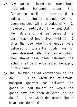 국제물품복합운송에 관한 유엔협약(MT조약, 1980) 제25조 '소송의 제한(Limitation of actions)'에 관한 내용이다. ( )에 들어갈 용어를 순서대로 바르게 나열한 것은?
