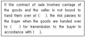 국제물품매매계약에 관한 유엔협약(CISG, 1980) 제67조 '운송조건부 계약의 위험'에 관한 내용이다. 다음 중 ( )에 들어갈 내용을 순서대로 바르게 나열한 것은?