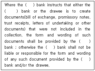 추심에 관한 통일규칙(URC 522) 제8조 '서류작성(Creation of Documents)'에 관한 내용이다. ( )에 들어갈 용어를 순서대로 바르게 나열한 것은?