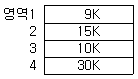10K 프로그램이 할당될 때 주기억장치 관리기법인 First-fit 방법을 적용할 경우 해당하는 영역은?