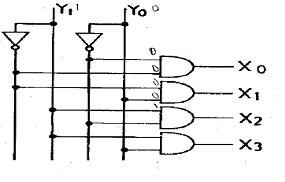 그림의 Decoder에서 Y₀ = 0, Y1 = 1이 입력되었을 때 “1”을 출력하는 단자는?
