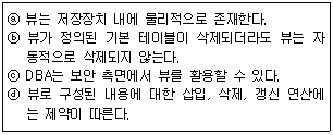 뷰(View)에 대한 설명 중 옳은 내용으로만 나열한 것은?(일부 핸드폰에서 보기 내용이 보이지 않아서 괄호뒤에 다시 표기하여 둡니다.)