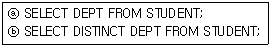 STUDENT 테이블에 독일어과 학생 50명, 중국어과 학생 30명, 영어영문학과 학생 50명의 정보가 저장되어 있을 때, 다음 SQL 문의 실행 결과 튜플 수는? (단, DEPT 컬럼은 학과명)