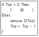다음은 스텍의 자료 삭제 알고리즘이다. ⓐ에 들어갈 내용으로 옳은 것은? (단, Top:스텍포인터, S:스택의 이름)