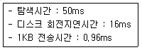 전송크기가 1KB(kilo byte)일 때, 이동헤드디스크의 데이터 액세스 시간과 고정헤드의 데이터 액세스 시간(ms)을 구한 결과는?