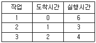 스케줄링 하고자 하는 세 작업의 도착시간과 실행시간이 다음표와 같다. 이 작업을 SJF로 스케줄링 하였을 때, 작업 2의 종료시간은? (단, 여기서 오버헤드는 무시한다.)(오류 신고가 접수된 문제입니다. 반드시 정답과 해설을 확인하시기 바랍니다.)