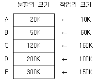 다음 표는 고정 분할에서의 기억장치 단편화(Fragmentation) 현상을 보이고 있다. 외부단편화(External Fragmentation)의 크기는 총 얼마인가? (단, 페이지 크기의 단위는 K를 사용한다.)