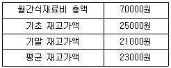 식당의 월 식재료비와 재고가액을 나타낸 표이다. 식재료의 재고회전율은 약 얼마인가?