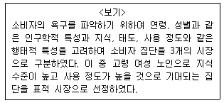 관리자가 <보기>와 같이 마케팅 STP(Segmentation, Targeting, Positioning) 전략을 수립하던 중 한 가지 요소를 누락하였다. <보기>에서 누락된 전략에 대한 설명으로 가장 옳은 것은?