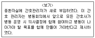 <보기>에서 제시된 간호관리자의 리더십 유형은?