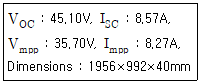 태양광발전 모듈의 특성치가 다음의 표와 같다. 이 모듈의 변환 효율은 약 몇 %인가?
