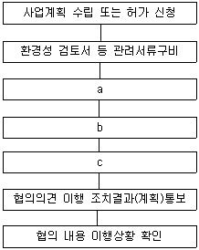 사전환경성 검토 업무 흐름도에서 a ~ c 에 들어갈 내용으로 옳은 것은?