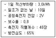 다음의 조건에서 독립형 태양광발전시스템의 축전지 용량(Ah)은?(오류 신고가 접수된 문제입니다. 반드시 정답과 해설을 확인하시기 바랍니다.)