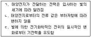 태양전지의 특징에 대하여 설명한 내용 중 옳은 것을 [보기]에서 찾아 모두 나열한 것은?