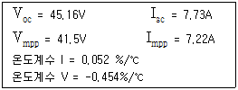 태양과발전용 인버터의 입력한계전압이 800 Vdc 라면, 이때 적합한 태양광발전 모듈의 최대 직렬 수는? (단, 모듈 온도변화는 –10℃ ~ 70℃로 하고, 기타 조건은 표준상태이다.)