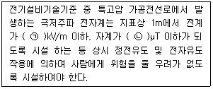 49 태양광 발전설비의 특별 제3종 접지공사를 할 때 접지 저항값은 몇 Ω 이하인가?(관련 규정 개정전 문제로 여기서는 기존 정답인 3번을 누르면 정답 처리됩니다. 자세한 내용은 해설을 참고하세요.) 50 전력계통의 전압을 조정하는 조상설비 중 진상 또는 지상 모두 무효전력 조정이 가능한 것은? 51 태양광발전시스템 설치공사 순서를 올바르게 나타낸 것은? 52 방화구획을 관통하는 배관, 배선의 처리방법에 대한 설명으로 틀린 것은? 53 케이블트레이의 시설방법으로 틀린 것은? 54 지붕 건재형 태양전지 모듈의 설치장소를 고려한 설치 사항으로 틀린 것은? 55 다음 중 적설하중과 관련 있는 사항이 아닌것은? 56 태양전지 전자판 연결공사에 대한 설명으로 틀린 것은? 57 표준 태양전지 이레이의 개방전압을 최대사용전압으로 간주할 때 절연내력 측정방법으로 옳은 것은? 58 태양광발전 및 발전용 수전설비에서 사용 전 검사 세부항목 중 차단기 검사항목으로 틀린것은? 59 전력기술관리법에 따르면 감리업자 등은 그가 시행한 공사감리 용역이 끝났을 때 공사감리 완료보고서를 며칠 이내에 시 • 도지사에게 제출해야 하는가? 60 접지공사의 종류에 따른 접지선의 굵기로 틀린것은?(관련 규정 개정전 문제로 여기서는 기존 정답인 2번을 누르면 정답 처리됩니다. 자세한 내용은 해설을 참고하세요.)